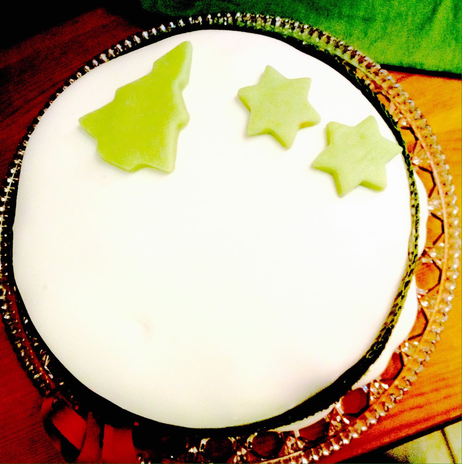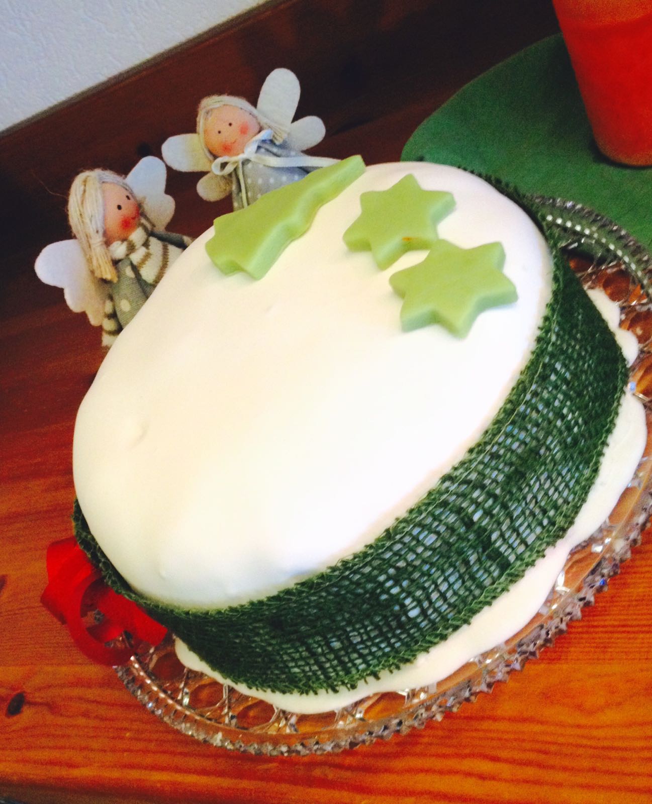 - 2 days before Christmas, unwrap your cake and place it onto a pretty dish.