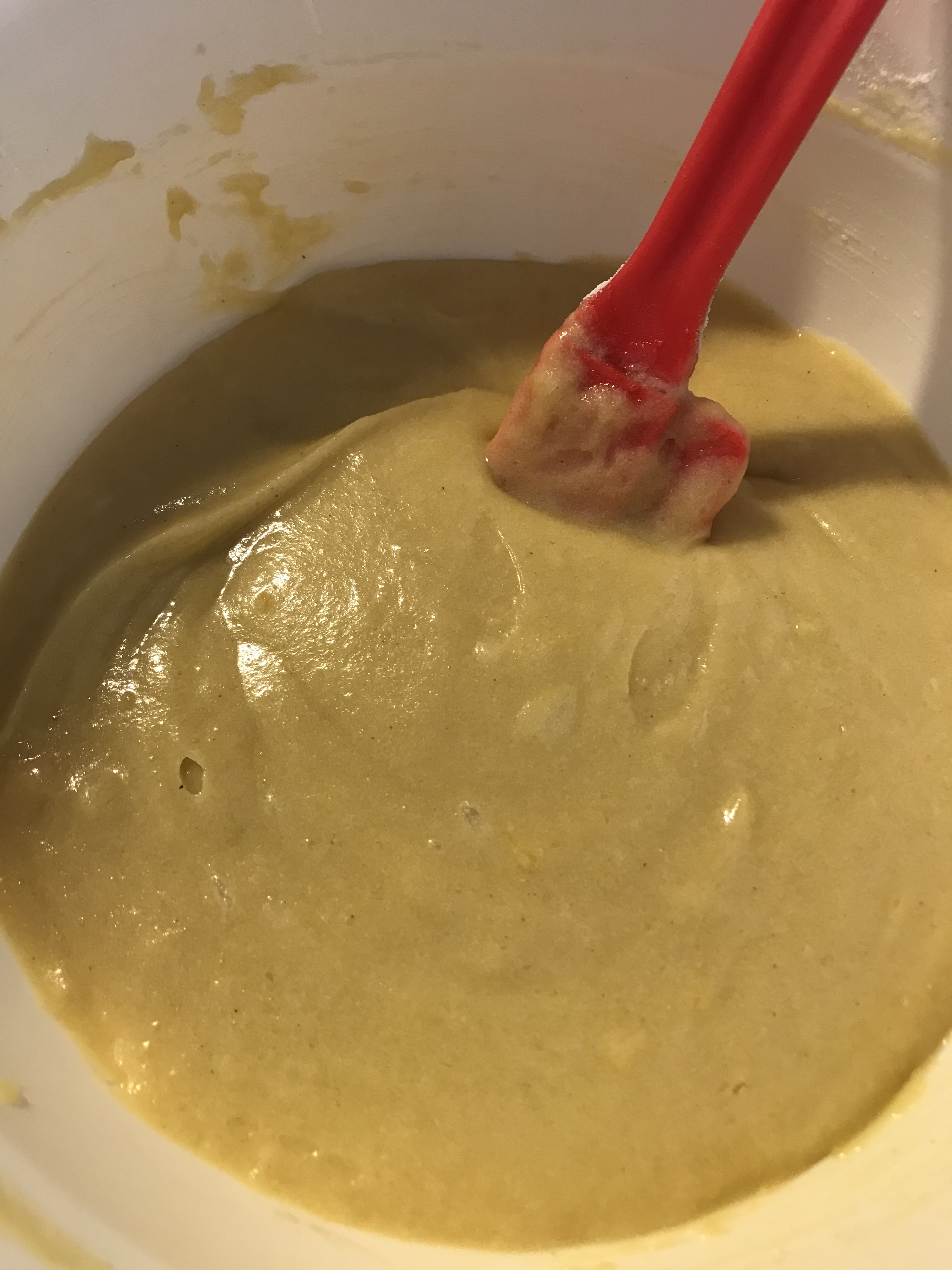 - Add the lemon juice and zest, the flours, baking powder and salt and mix well again.