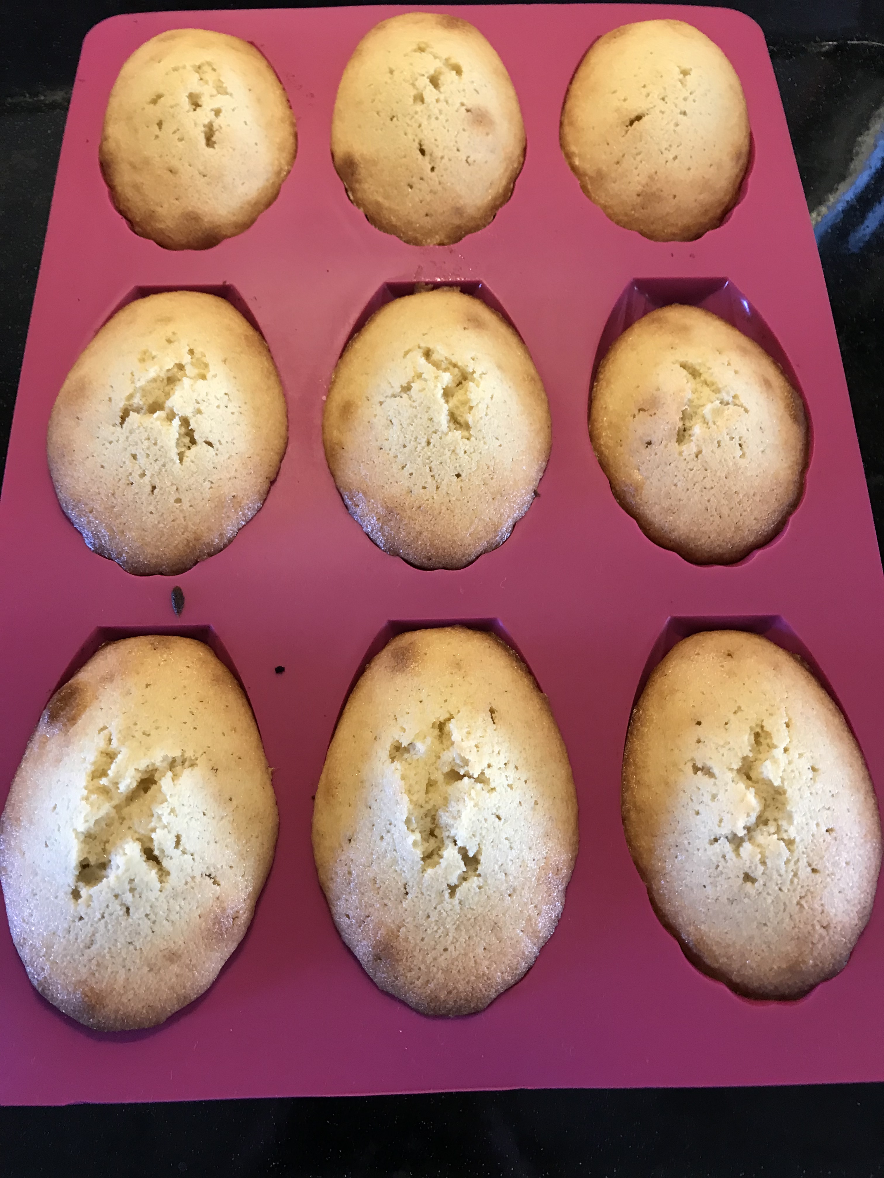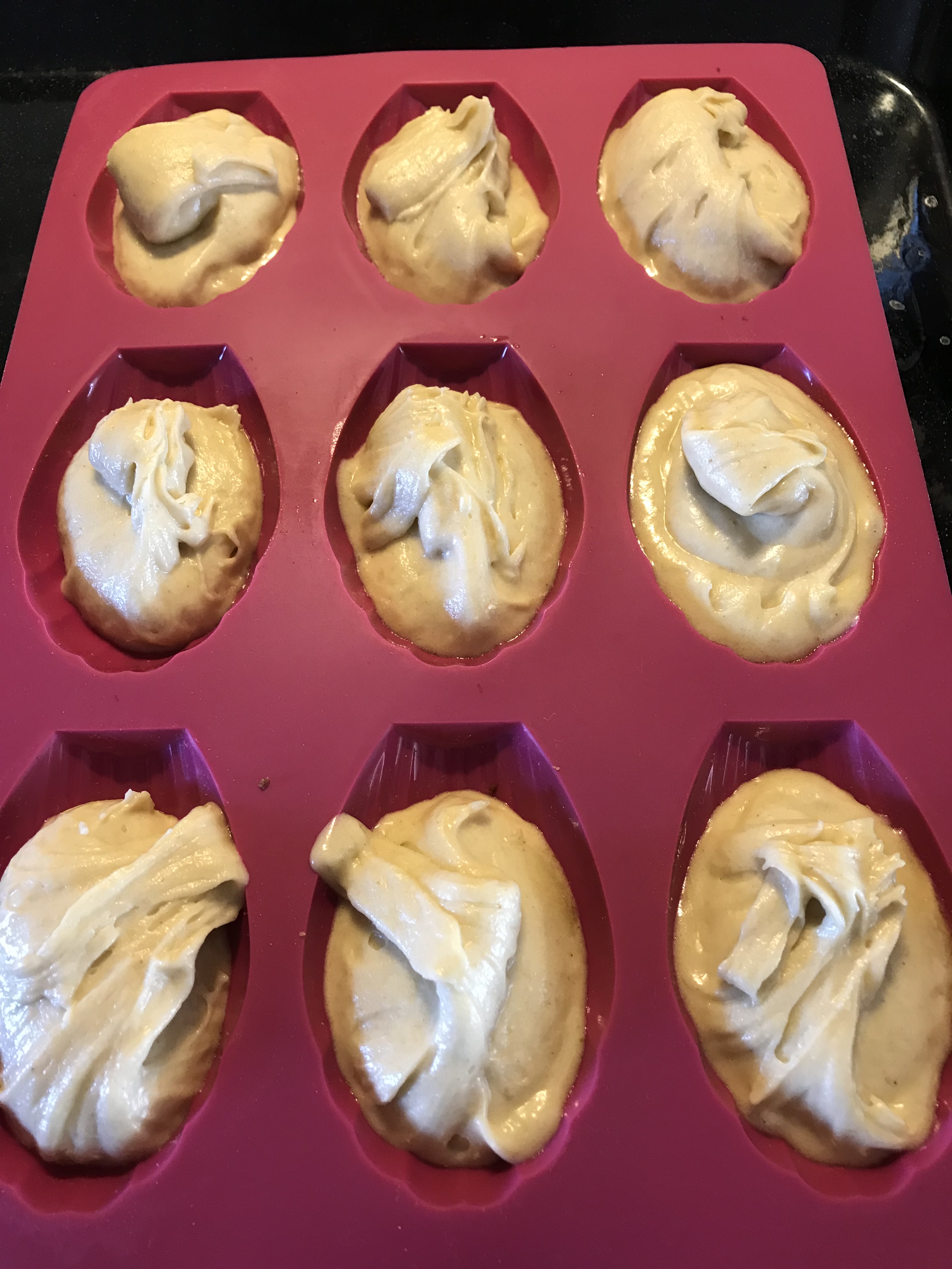 - Put a tablespoon of the batter into each of the little shell-shaped cavities of the madeleine tray.