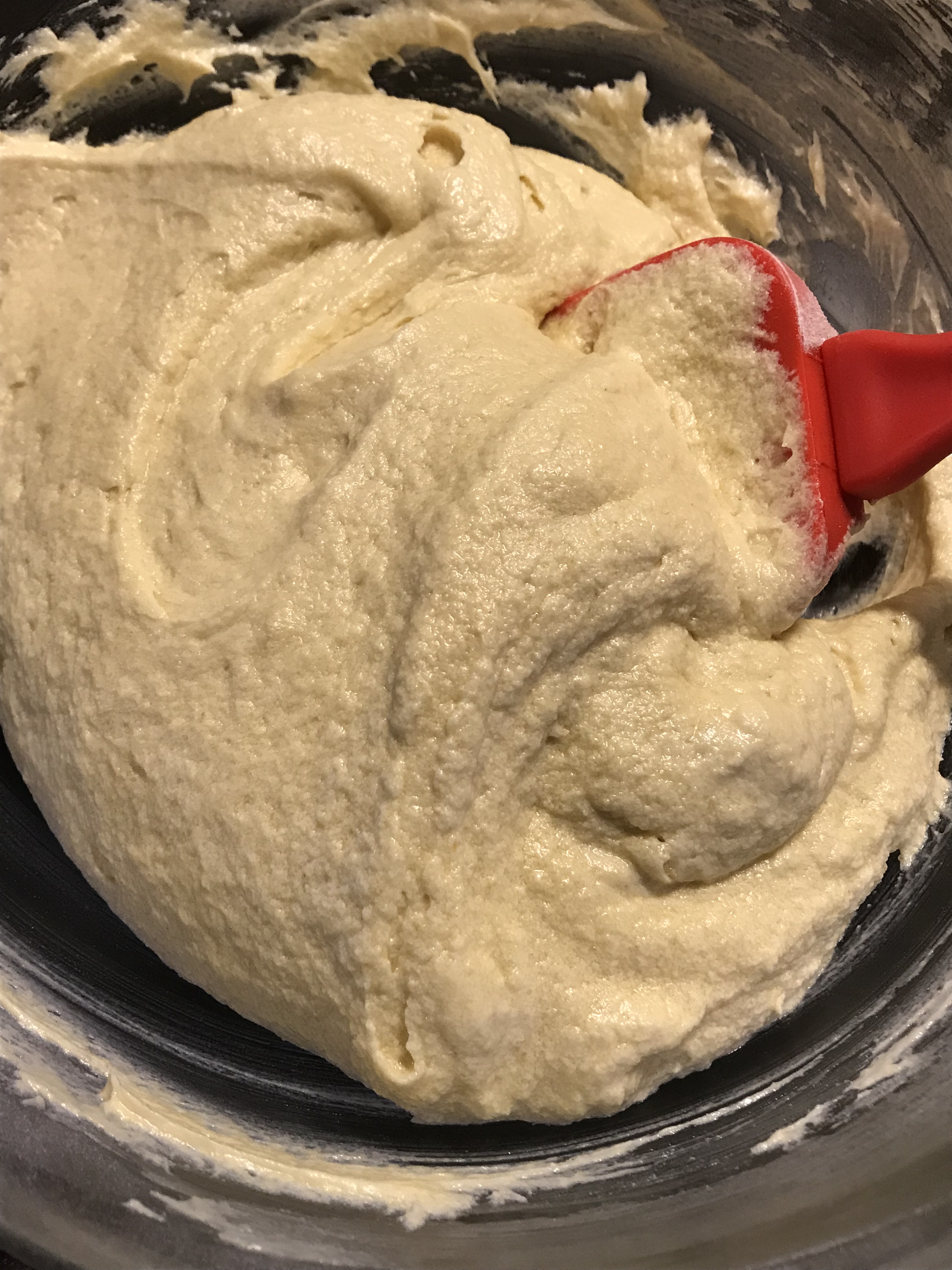 - Add the flour, vanilla sugar, baking powder (if using) and pinch of salt. Mix thoroughly, preferably using a hand mixer or blender.