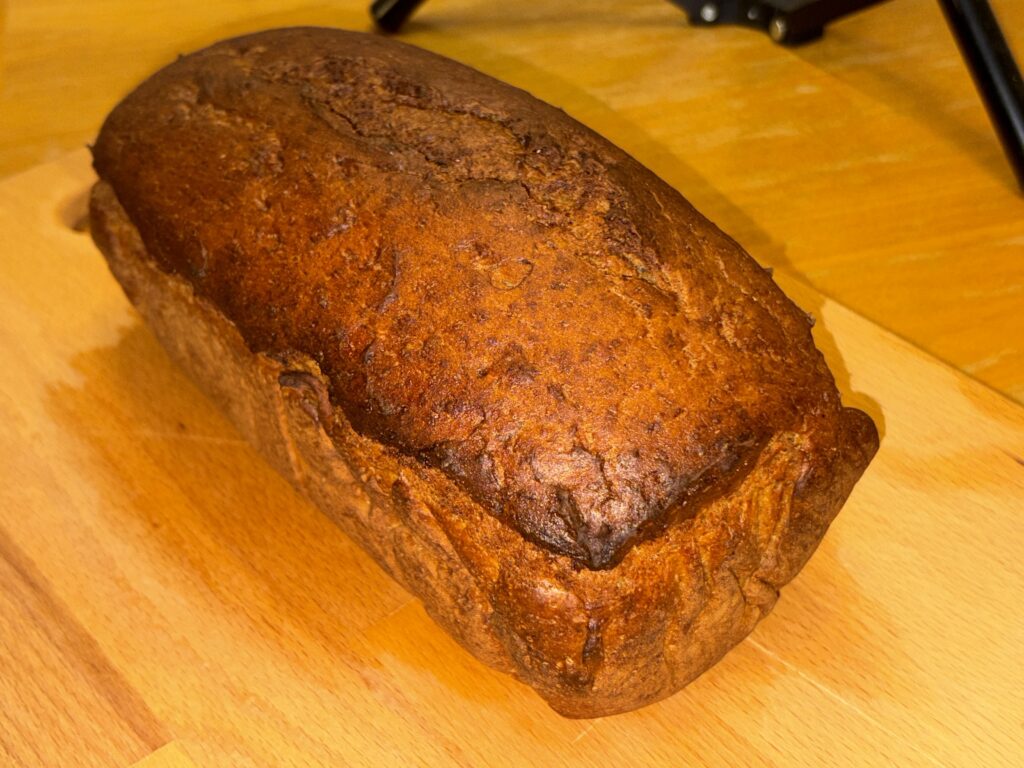 • Bake in the oven for 30 minutes at 200°C.  After 30 minutes, take the loaf out of the tin, and bake for a further 10 minutes (this will make it nice and crusty all over).