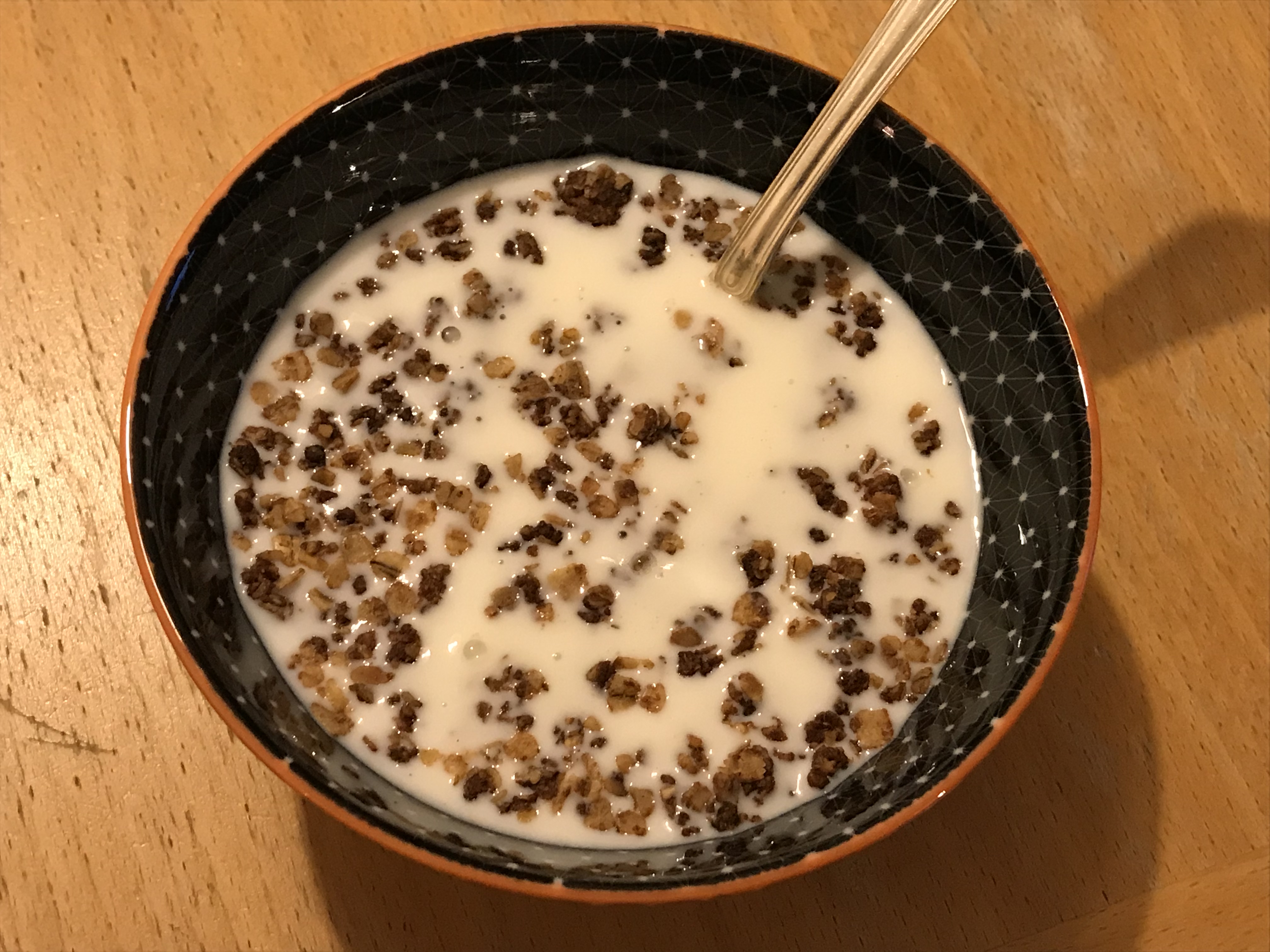 - I have it for breakfast or snacks, served with milk or yogurt and/or fresh fruit.
