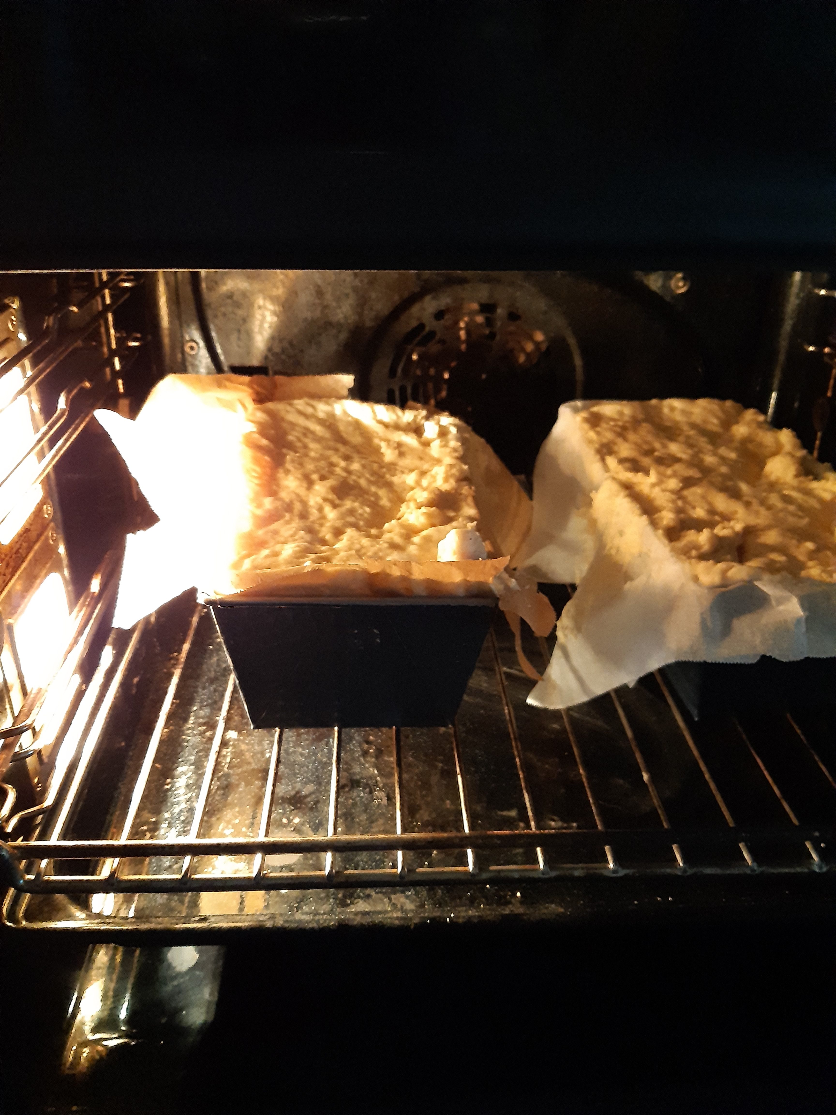 For two loaves, baked in two 18 x 8 cm cake tin – or one big loaf, baked in a larger cake tin
