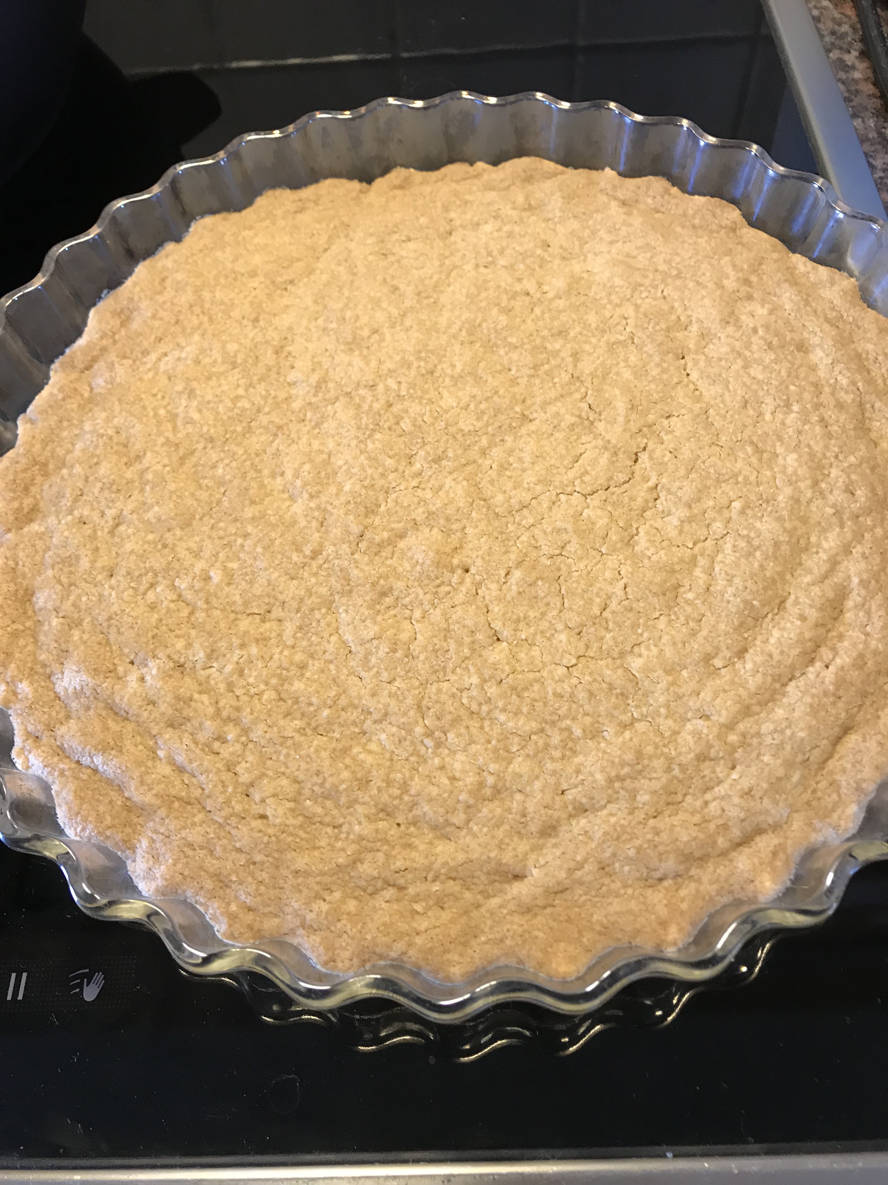 - Press the dough into an ovenproof dish – I used a round glass pie dish, with a diameter of 21 cm. Prick the dough lightly with a fork.