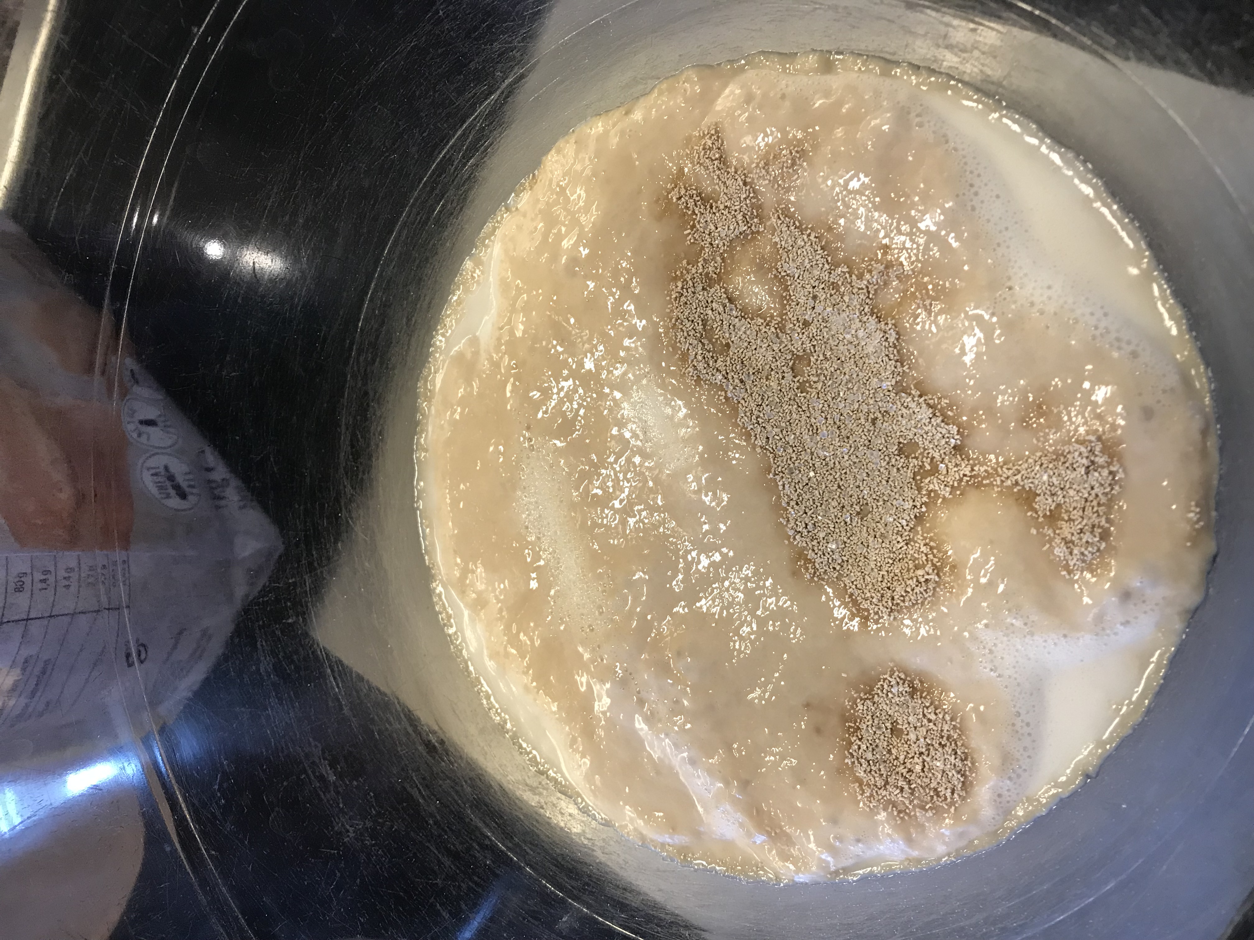• Place 50 ml milk in a large bowl and add the dried yeast.