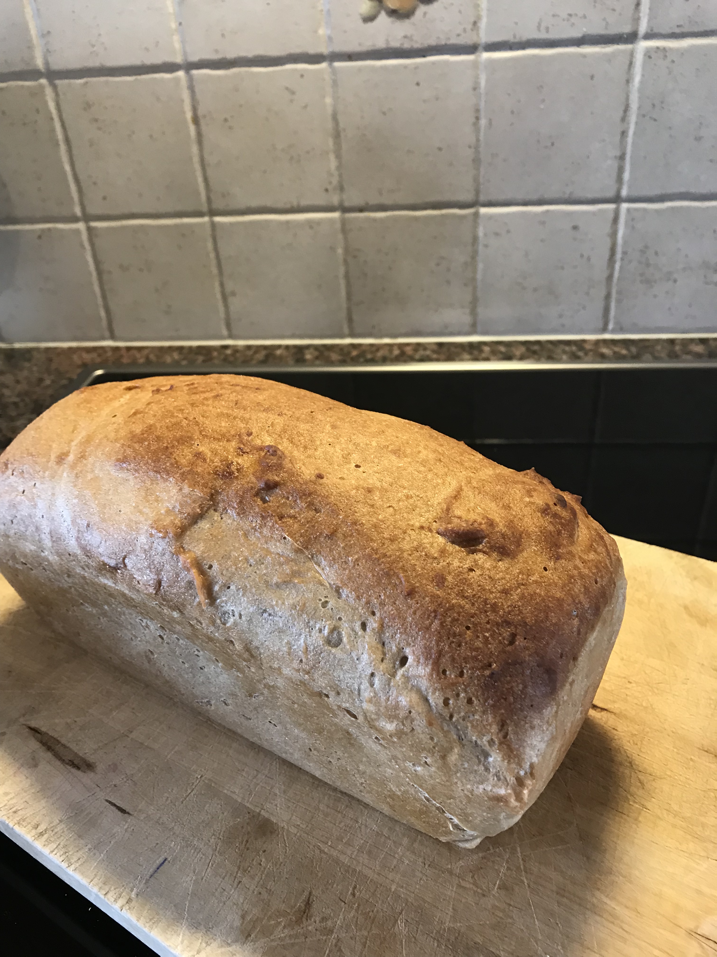 For one big loaf, baked in a 25 x 10 cm cake tin