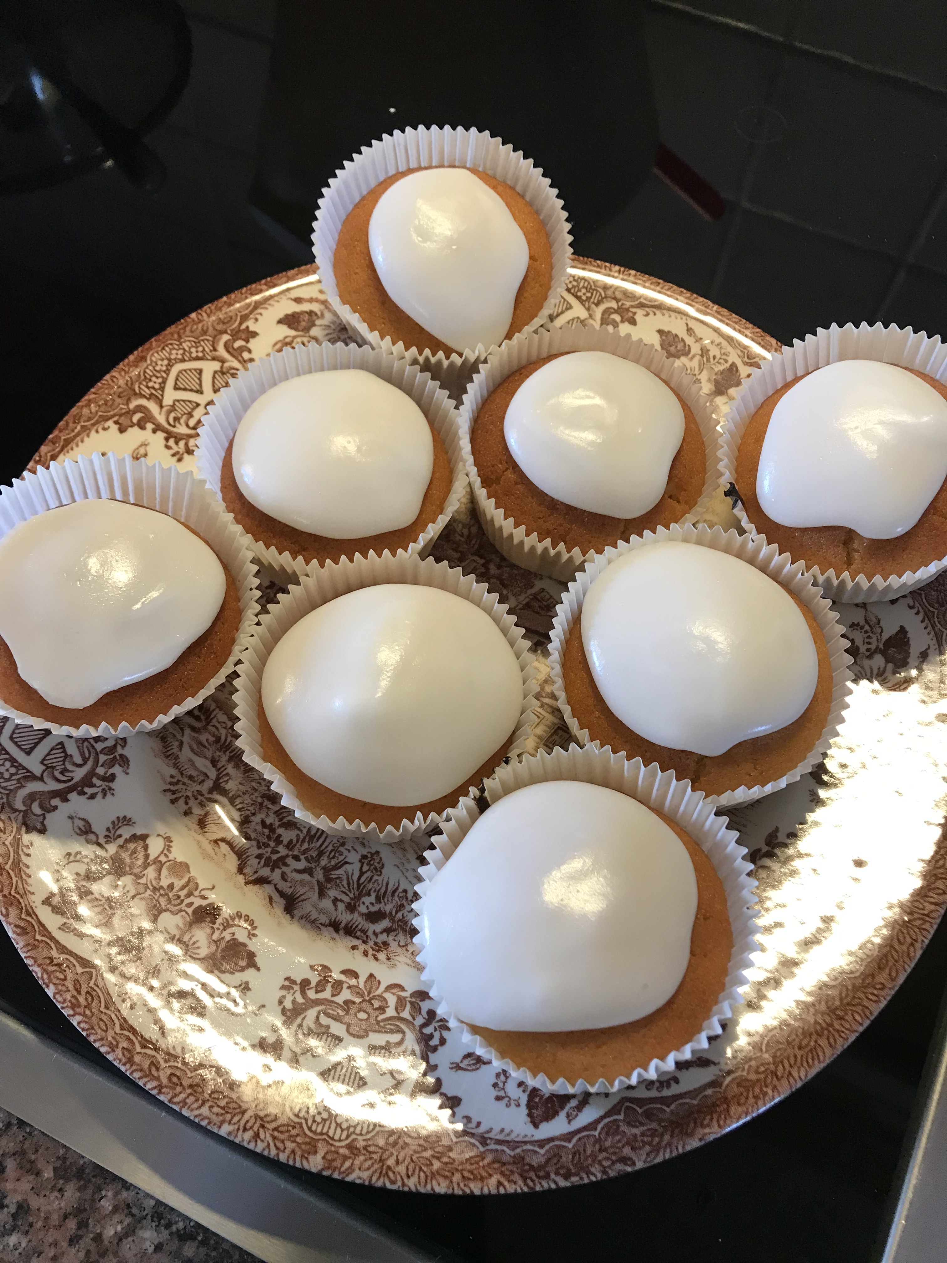 - Mix the icing sugar and lemon juice and put a spoonful of icing onto each cupcake.