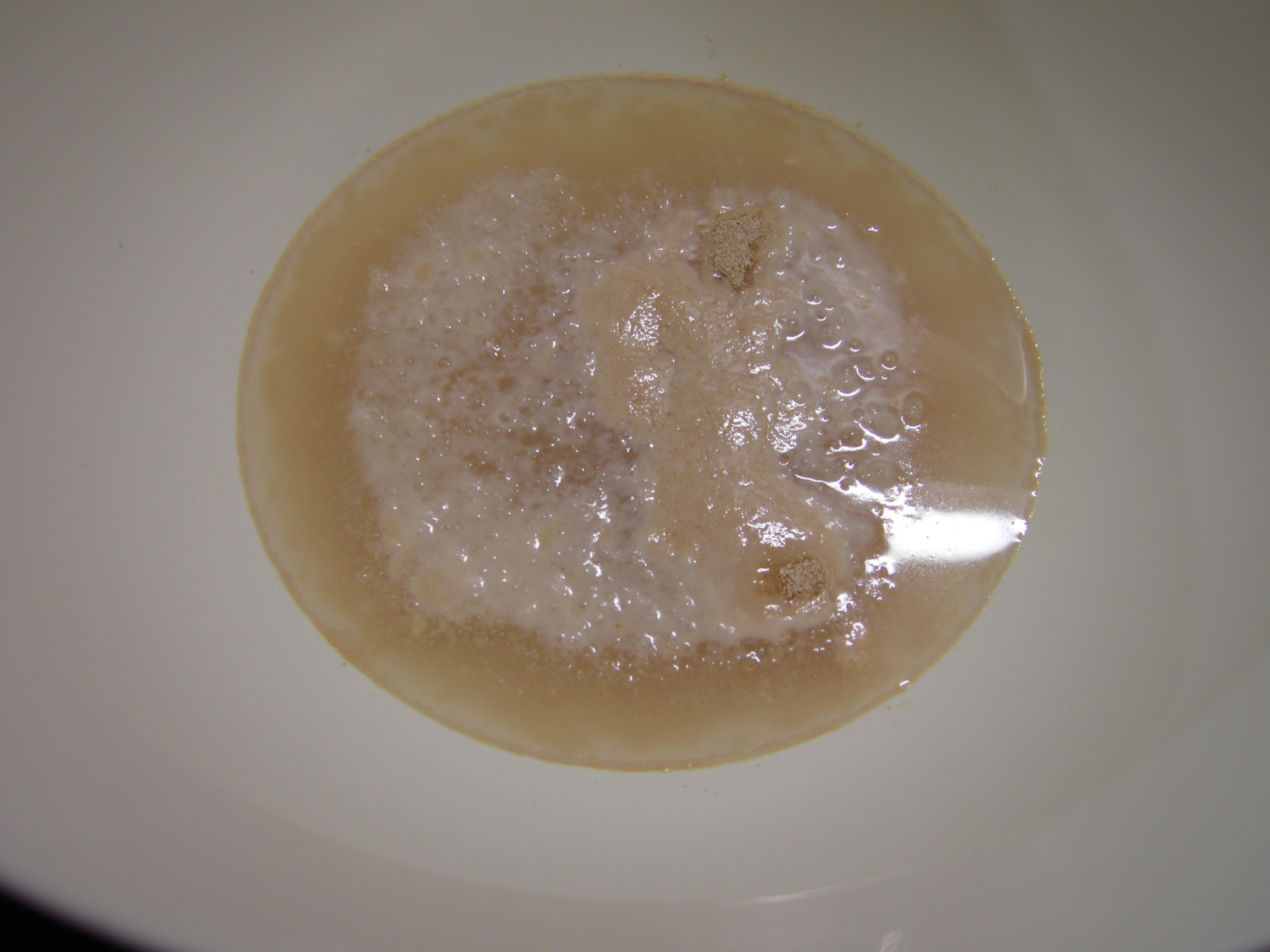 - Place the water in a large bowl. Add the yeast and sprinkle the surface with a little sugar. Let it stand for about ten minutes until the yeast is activated (see Baking bread)